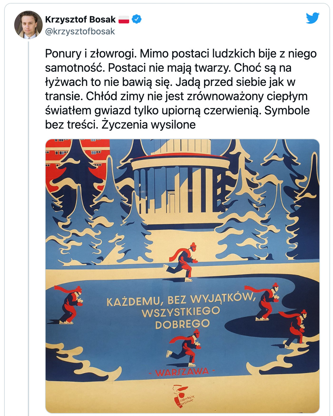 nie bardzo wiem o co z tymi kartkami chodzi - pomijając estetykę, ratusz zrobił swoją kartkę, neutralną światopoglądowo, co w przypadku akurat ratusza się chwali, bo powinien być dla wszystkich: czarnych, czerwonych, tęczowych, niebieskich. A jakiś pan z Ursynowa zrobił swoją kartkę, która jest bliższa jego światopoglądowi i wierzeniom. No i dobrze, dopóki mamy demokrację, to pan może sobie robić kartki jakie tylko chce, jego prawo i przywilej. Więc o czym ten artykuł? O moich kartkach też napiszecie? No chyba, że z jakiegoś powodu chcieliście wkurzyć ludzi przed świętami cytując panią pawłowicz, ale tym, to raczej stracicie czytelników niż zyskacie klikalność. Pewnych granic się nie przekracza.