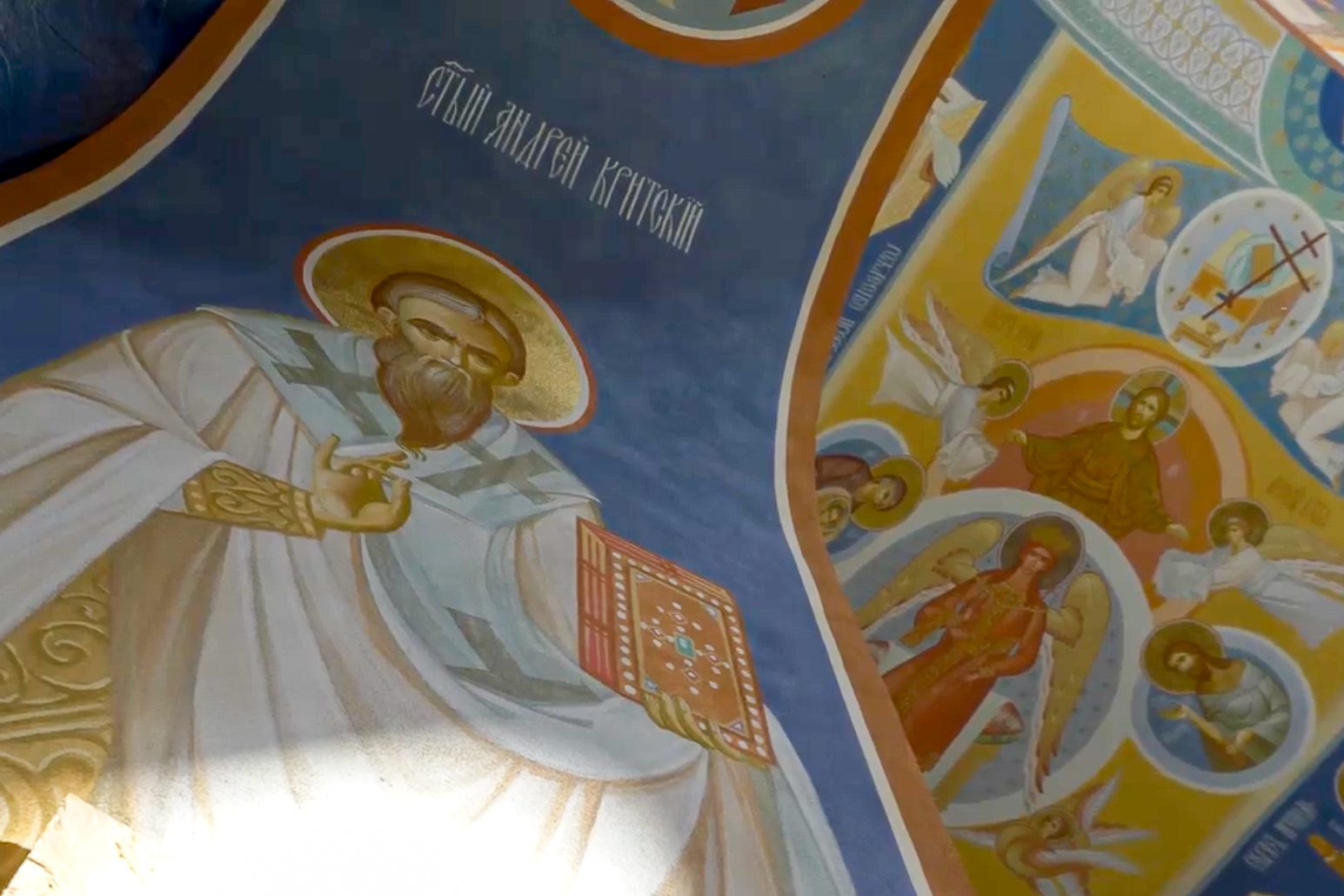 Wnętrze świątyni pokryte będą w całości polichromiami. Ich rozpisywanie potrwa jeszcze prawie 2 lata. Gotowy jest już wizerunek Chrystusa Pantokratora w centralnej części oraz ołtarz. Ich autorem jest prof. Wołodymir Teliczko pochodzący z Ukrainy, twórca malowideł w największej polskiej świątyni prawosławnej Świętego Ducha w Białymstoku.