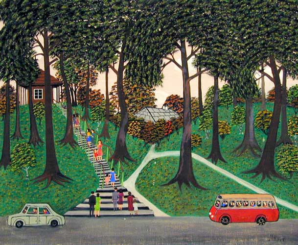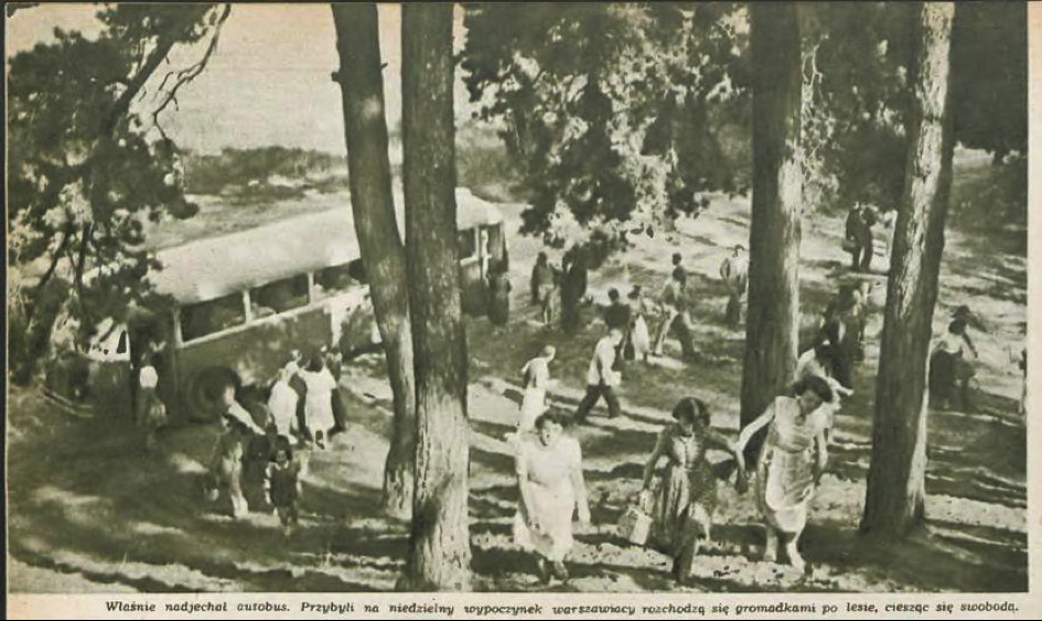 Przedstawiciele każdej grupy wiekowej znajdą tu atrakcyjne formy spędzania wolnego czasu. ZTM zapewnił wygodny dojazd: autobusem nr 519 z Centrum lub pieszo spacerkiem ze stacji metra Kabaty. Motyw wysypujących się z autobusu warszawiaków przedstawiła na swoim obrazie Maria Korsak.