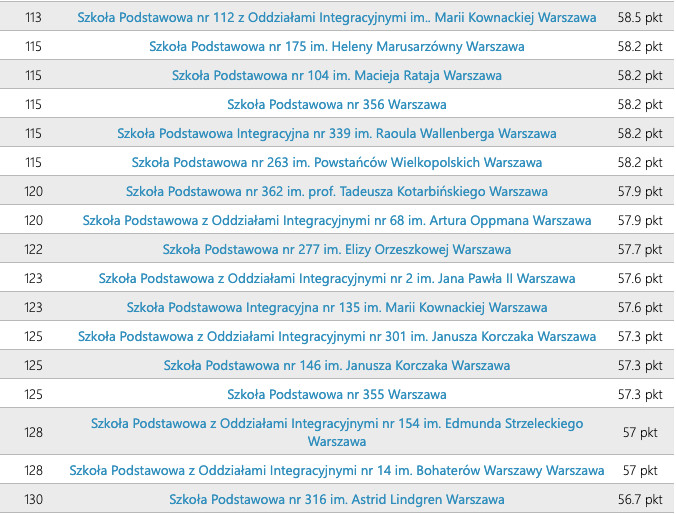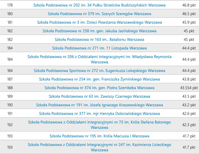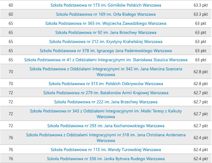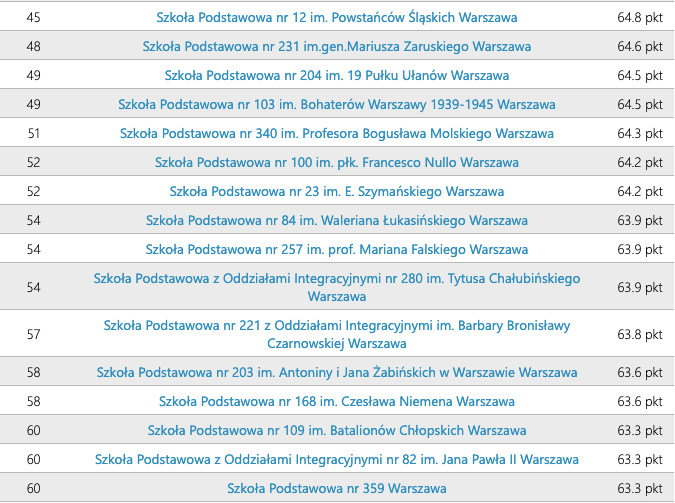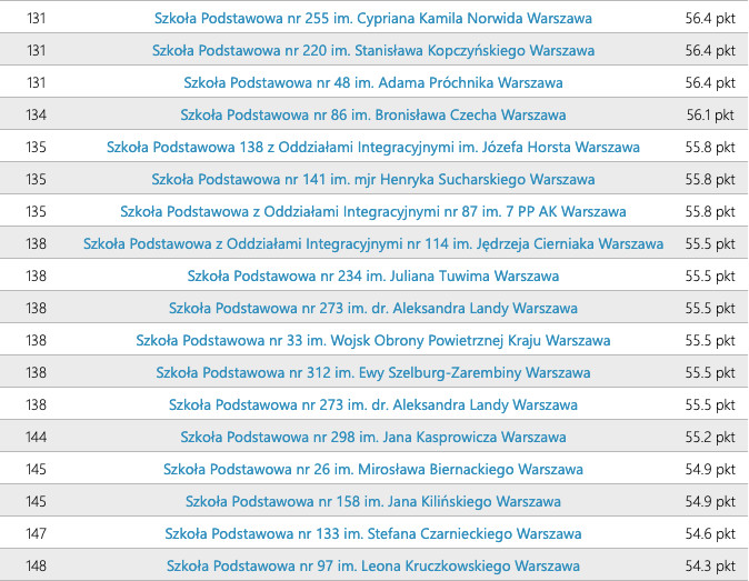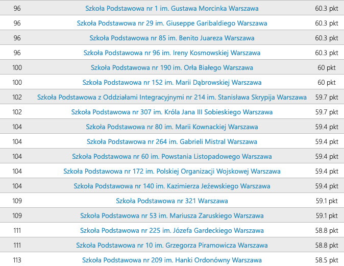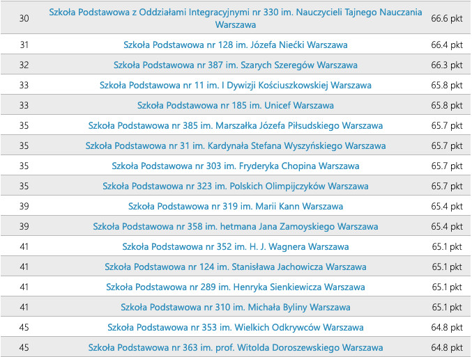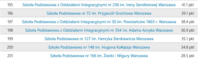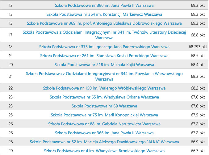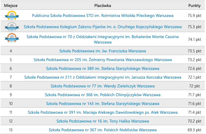 Pełny ranking szkół podstawowych w Warszawie 2021 - źródło: waszaedukacja.pl