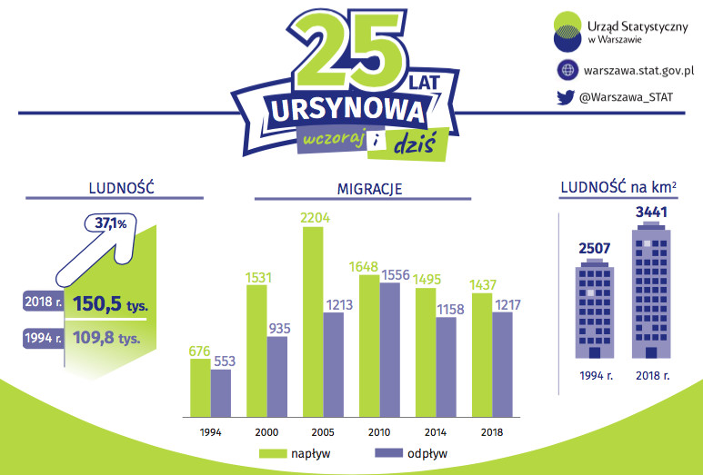 Wciąż jesteśmy młodą dzielnicą, choć mieszkańców nie przybywa tak szybko jak jeszcze kilkanaście lat temu. Warszawski Urząd Statystyczny podsumował 25 lat stołecznych dzielnic. Jak zmienił się przez ten czas Ursynów? Dane są niezwykle ciekawe!