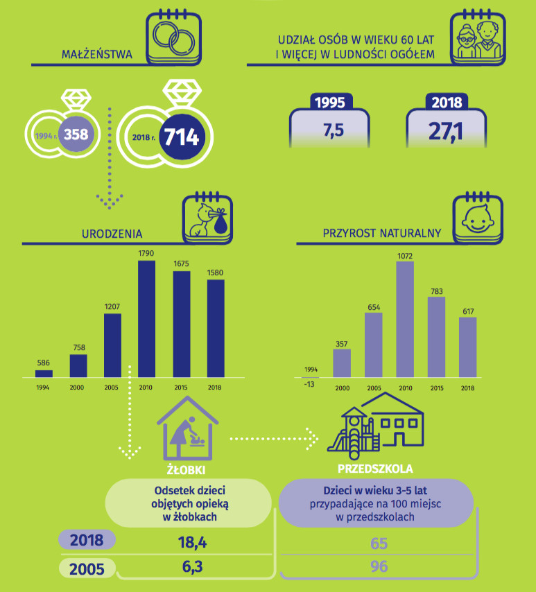 Z danych Urzędu Statystycznego w Warszawie wynika, że znacznie wzrosła liczba mieszkańców. Jest nas 150,5 tys. a w 1994 roku było 110 tysięcy. Liczba mieszkańców wzrosła więc aż o 37 proc.