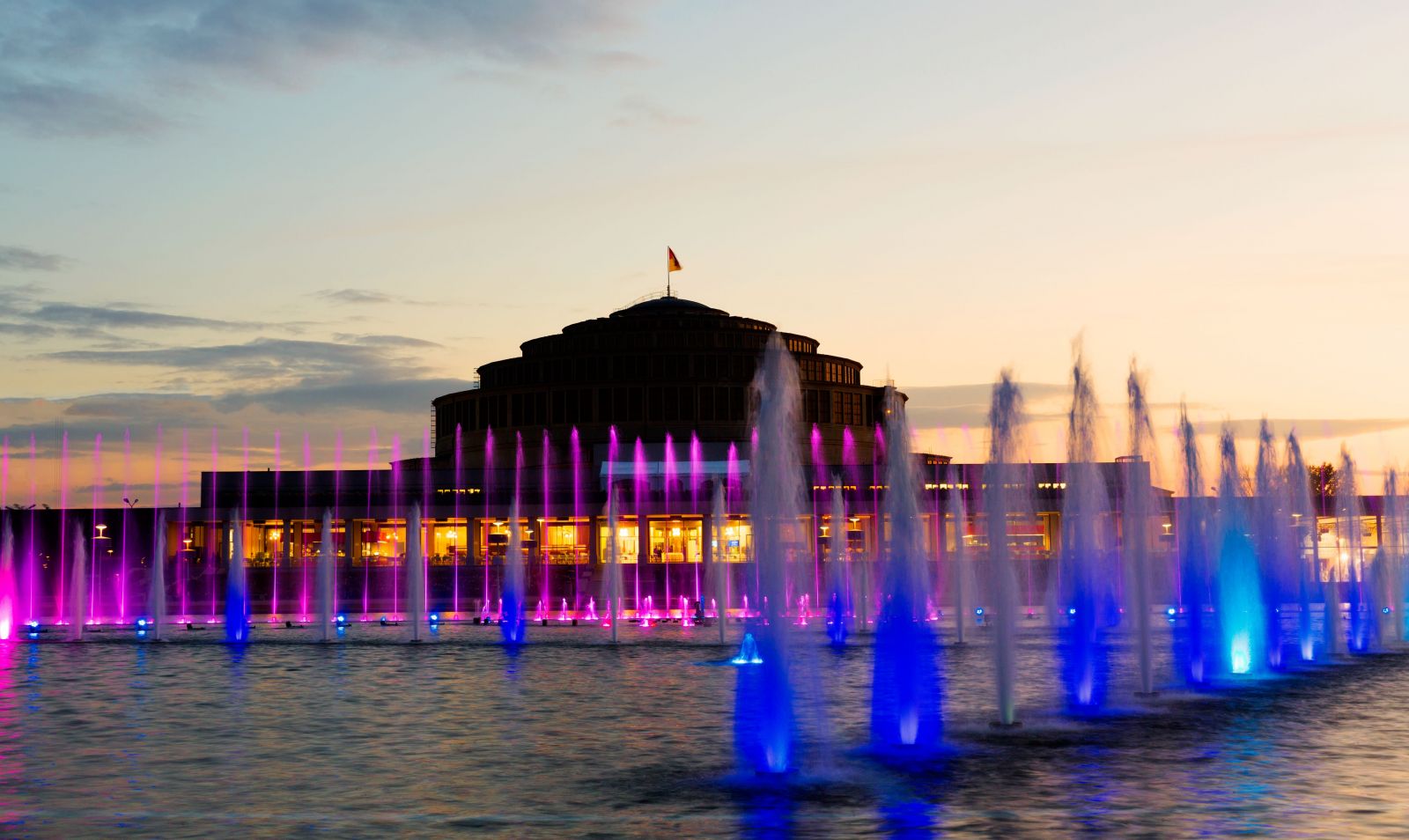 Pokazy fontanny multimedialnej z muzyką prezentowane są w sezonie letnim (maj-wrzesień) codziennie od 10:00 - 21:40. W weekendy organizowane są specjalne pokazy ze wspaniałym oświetleniem, muzyką oraz animacjami. W sezonie fontanna przeistacza się w lodowisko z niezwykłym klimatem.
